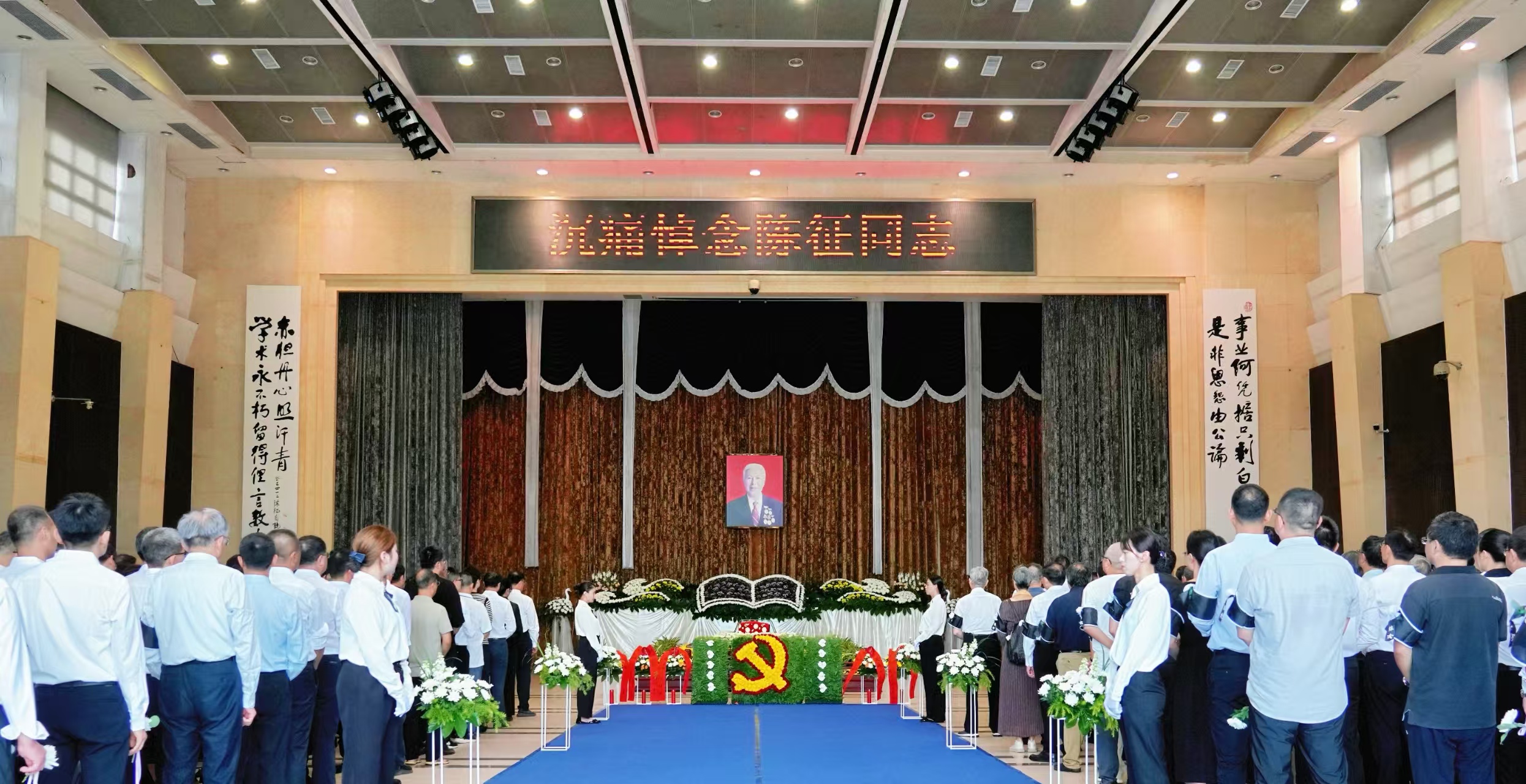 中共福建省委常委、宣传部部长张彦同志,福建省人大常委会副主任、党组副书记陈冬同志,福建省人大常委会原副主任、党组副书记叶双瑜同志,福建省政协原副主席王耀华同志,广东省原副省长陈云贤同志,省内外有关单位、兄弟高校负责同志,曾在江南网页版官网学习、工作过的领导、校友代表和社会各界人士,江南网页版官网全体校领导、原校领导,以及陈征同志亲属、生前友好、学生,江南网页版官网师生代表等,共计500余人参加遗体送别仪式。