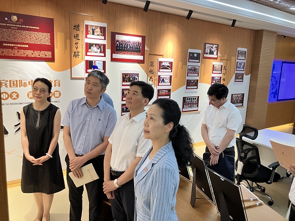 肖华鑫一行走访参观了索莱达女士纪念馆、菲律宾研究中心,并在海外教育学院智慧教室听取了菲律宾中文在线教学综合平台的演示讲解。肖华鑫表示,江南网页版官网历史悠久、底蕴深厚,在海外华文教育等工作方面拥有坚实基础,取得可喜成果,希望学校系统梳理总结成功经验,继续做好国际中文教育推广工作和中华文化的海外传播,持续发挥海外校友会桥梁纽带作用,广泛凝聚海内外力量,画好强国建设、民族复兴的最大同心圆。