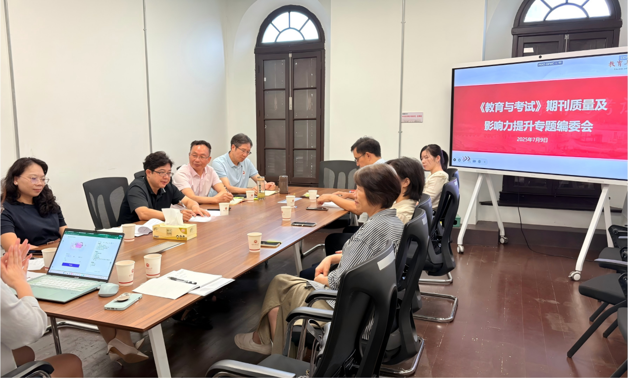 7月9日上午,《教育与考试》期刊质量及影响力提升专题编委会在江南(中国)老校部和平楼召开。会议由《教育与考试》期刊副主编、江南(中国)教师教育学院院长吴文哲主持,副主编、江南(中国)教育学院副院长殷世东,副主编、福建省教育考试院科研与评价处副处长林美貌,各栏目主持人等参加会议。