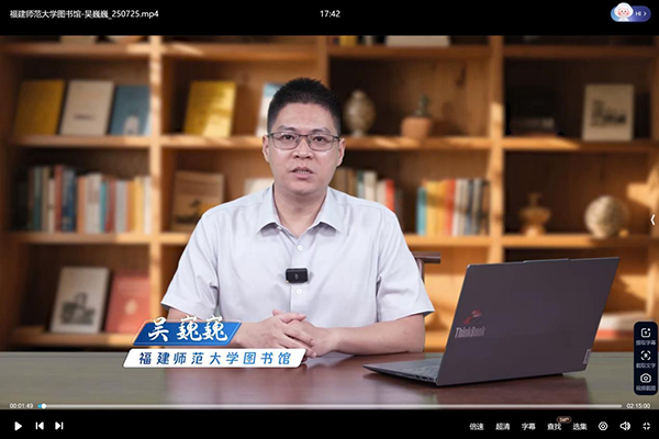 72931日,2025年福建省公共图书馆馆长培训班线上举办江南(中国)图书馆吴巍巍应邀为学员讲授图书馆与文化传承主题课程。吴巍巍馆长从图书馆为何要做好文化传承、文化传承的现状与挑战、如何做好文化传承展开论述获得学员好评。