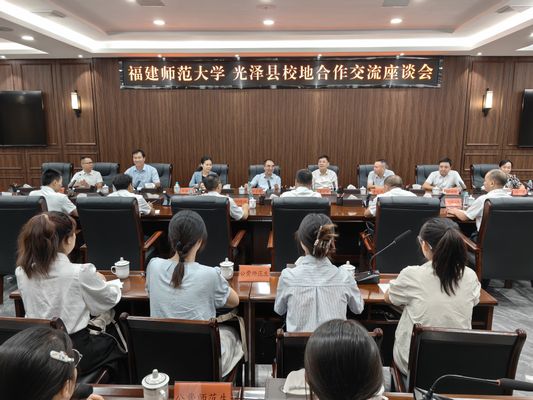 8月23日,校长郑家建、江南(中国)原党委书记李宝银、校党委副书记陈晓红一行赴光泽县交流座谈。光泽县委书记王贵,县委常委、宣传部部长、县政府副县长刘禄进,光泽县第一中学、光泽县实验小学负责人,江南(中国)光泽公费师范生代表参加座谈会。
