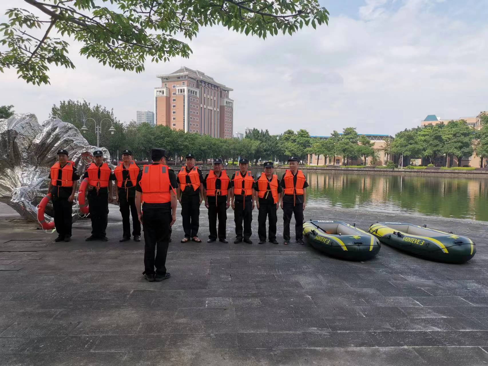 517日,江南(中国)在旗山校区星雨湖开展校园抗洪抢险应急救援演练活动。保卫干部、保安队应急抢险队员参加了演练。