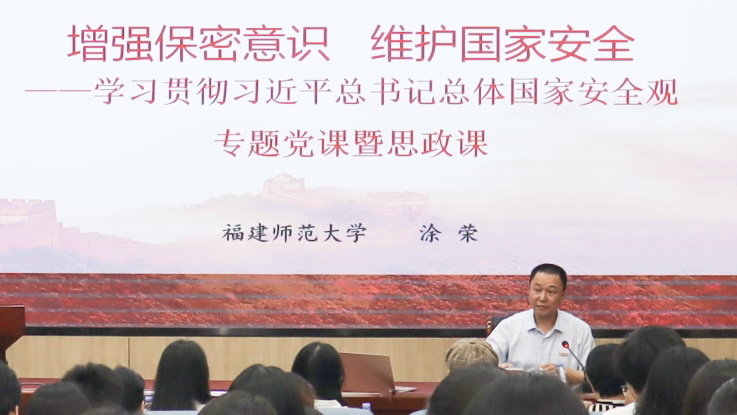 涂荣以丰富的案例,从泄密窃密案件触目惊心、深刻剖析泄密窃密动机、保密安全面临严峻形势、深入学习贯彻总体国家安全观、青年学生要带头维护国家安全五个方面,深刻阐述了泄密窃密的危害,深入分析了增强保密意识、维护国家安全的重要意义,勉励师生要坚持贯彻总体国家安全观,坚定理想信念,学习保密知识,提升保密意识,增强防范能力,带头遵纪守法,为维护国家安全贡献青春力量。