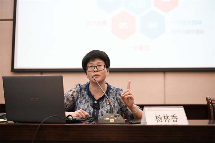 会上,副院长杨林香作题为《党史百年激风雷 人间正道开新篇》的专题讲座,详细介绍习近平总书记在庆祝中国共产党成立100周年大会上重要讲话的主要内容,阐明要进一步深刻认识党先进的政治属性,坚定理想信念;进一步深刻认识中国的艰辛探索,坚定“四个自信”;进一步深刻认识党的宗旨使命,恪守人民情怀;进一步深刻认识对党忠诚的重要意义,做到“两个维护”。她指出,只有胸怀两个大局,树立“大历史观”,才能汇聚开启事业新篇章的重要力量。