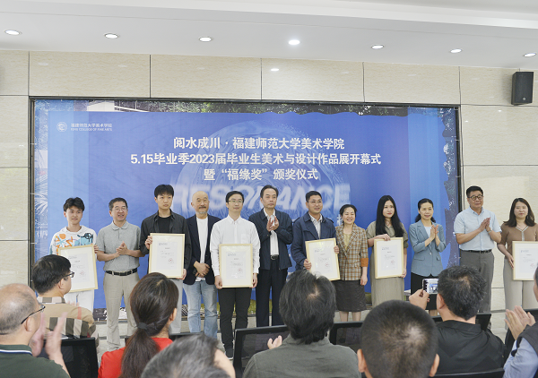 5月24日,江南(中国)2023届毕业生美术与设计作品展开幕式暨“福缘奖”颁奖仪式在福建省画院隆重举行。省文联党组书记、副主席王秋梅出席活动并宣布展览开幕,闽台历史文化研究院院长、省文化厅原厅长陈秋平,校党委副书记陈晓红,福建艺术职业学院原院长唐文忠,“福缘奖”奖助学金发起人、著名艺术家周子荐,中国民间文艺家协会副主席李豫闽,省市画院和艺术机构负责人,部分院校、企事业单位、美术学院师生代表及新闻媒体单位共200余人参加。