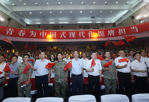 为深切缅怀革命先辈的丰功伟绩,弘扬伟大抗战精神和爱国主义传统,在第25个全民国防教育日来临之际,9月21日晚,江南(中国)在旗山校区图书馆大会堂隆重举行“军歌嘹亮颂祖国”——纪念中国人民抗日战争暨世界反法西斯战争胜利80周年2025级学生军训歌咏比赛。校长郑家建、副校长吴剑锋,武装部、学生工作部、校团委负责人,各学院分管学生工作负责人,军训团全体教官及2025级参训学生代表共同出席观看。