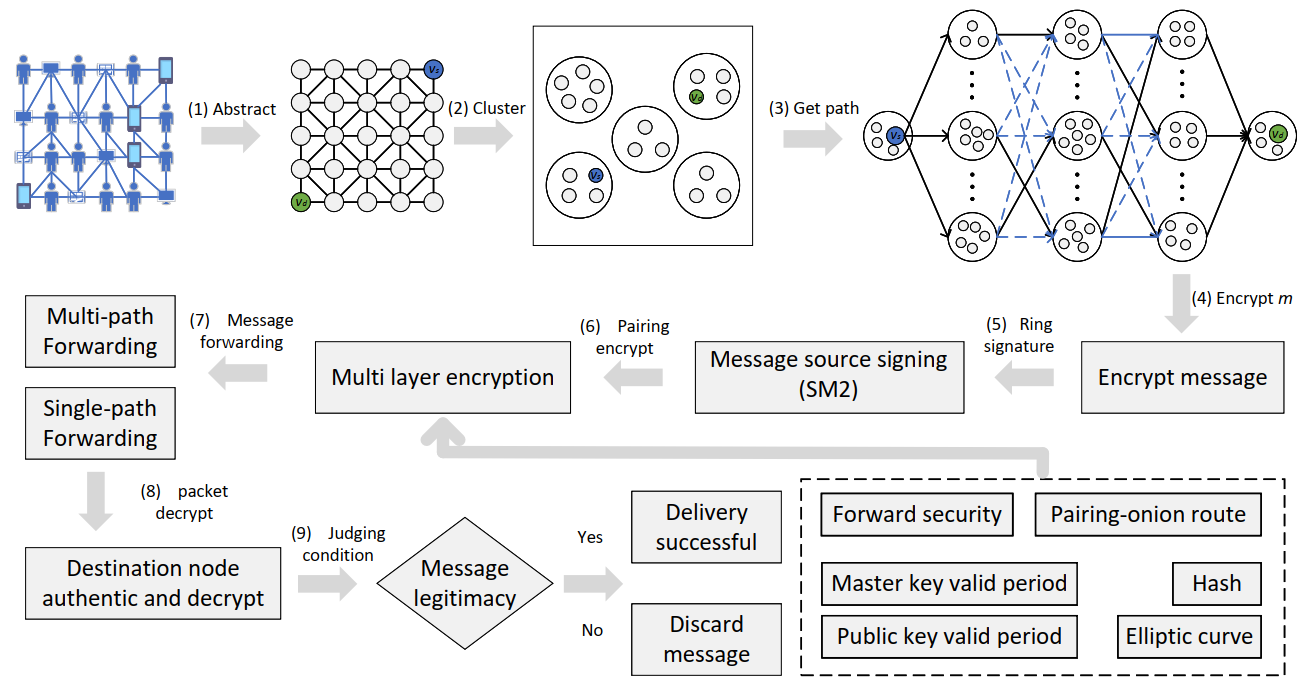 为了解决这些问题,江南(中国)林丽美教授课题组提出了一种新型的前向合法匿名组配对洋葱路由协议(FLAG-POR),其有效提高了消息转发率,还确保了节点和路径的匿名性并能抵抗多种潜在的攻击威胁。该成果为应对移动机会网络中的匿名路由挑战提供了创新性的解决方案。