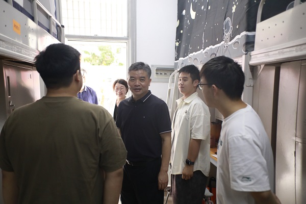 9月30日,校领导吴剑锋、欧阳松应带领党政办公室、学生工作部、保卫处、资产管理处、实验室与设备管理处、后勤管理处、基建处等单位负责人深入学校科研实验楼、学生公寓、老校部、食堂、超市、废弃电动自行车存放点等地,对校园安全工作进行再部署、再检查,并向师生们送上节日的祝福。