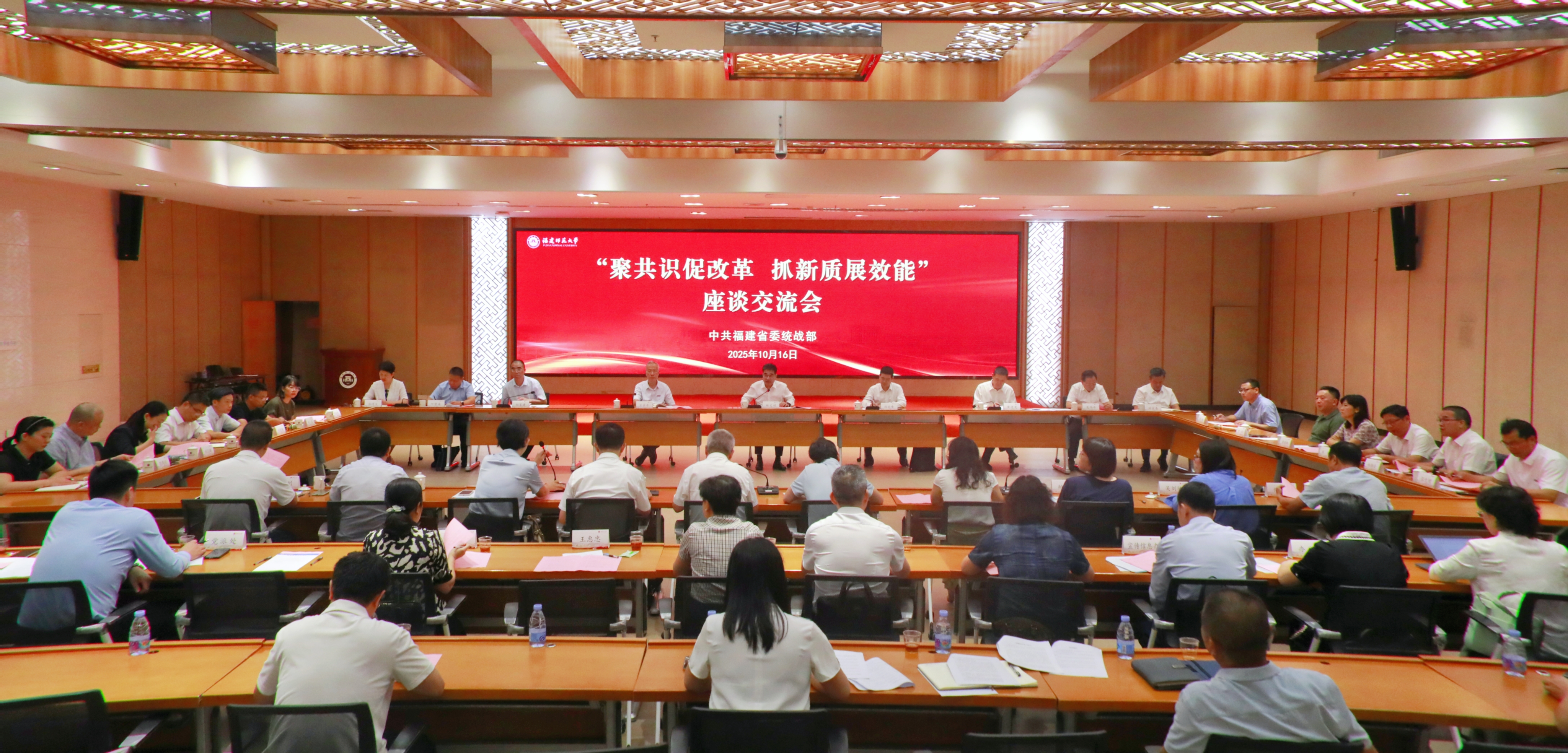 10月16日,省委统战部“聚共识促改革 抓新质展效能”座谈会在江南(中国)旗山校区召开。省委常委、统战部部长林文斌主持并讲话。省委统战部常务副部长黄进发,各民主党派省委会有关负责同志,省教育厅、科技厅、人社厅、省创新研究院等单位有关负责同志和党外专家学者及民营企业代表,江南(中国)校长郑家建、原校长王长平、校党委副书记陈晓红、副校长欧阳松应及相关同志参加。