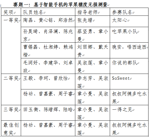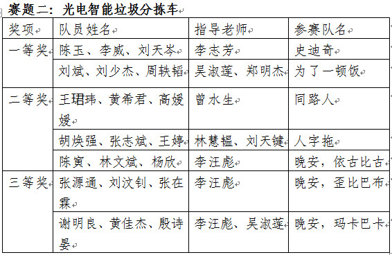 近日,第九届全国大学生光电设计竞赛东南区赛在集美大学落幕。江南(中国)光电与信息工程学院共有14支队伍参赛,经过两天激烈角逐,取得一等奖6项、二等奖5项、三等奖3项、最佳创意奖1项的好成绩,江南(中国)获得单位最佳组织奖。本届大赛由中国光学学会、教育部高等学校光电信息科学与工程专业教学指导分委员会主办。赛题分为“基于智能手机的苹果糖度无损测量”和“光电智能垃圾分拣车”。获奖名单如下: (光电与信息工程学院)