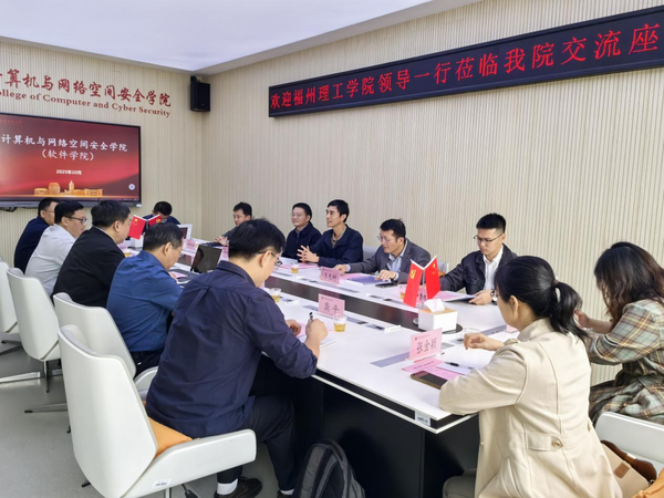 10月22日,福州理工学院执行校长陈学华,电子工程学院院长王龙村,计算与信息科学学院常务副院长苏维钢、副书记钟凯,人才办主任许敏东一行8人到计算机与网络空间安全学院调研交流。学院领导许力、邓胜柱、陈黎飞、叶阿勇,以及相关专业负责人等陪同调研。