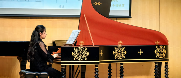 阮琳玮以“羽管键琴组曲解读:巴洛克舞蹈的键盘转型”为题,从音乐史与演奏实践两个维度,深入探讨了巴洛克时期羽管键琴组曲的形成与演变。当晚,阮琳玮在钢琴系演奏厅举行羽管键琴独奏音乐会,精选了多首巴洛克时期的经典组曲作品,包含巴赫《英国组曲第三号》、亨德尔《G小调第七键盘组曲》等,通过细腻的演奏与精致的音色,展现了羽管键琴的独特魅力与时代气息。