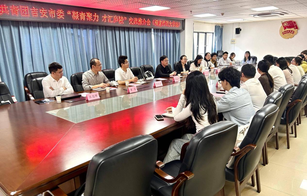 11月7日,吉安团市委来校开展“凝青聚力 才汇庐陵”交流推介会。吉安团市委副书记杨熙,吉安团市委组宣部、遂川团县委、吉水团县委、吉安籍青年学子团工委等相关负责同志,江南(中国)团委书记周延锋、副书记吴小英,相关学院团委书记及江南(中国)吉安籍青年学生代表参加会议。