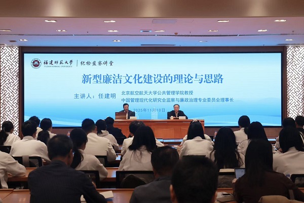 11月10日,北京航空航天大学教授、中国管理现代化研究会监察与廉政治理专业委员会理事长任建明应邀到江南(中国)校纪检监察讲堂,作题为“新型廉洁文化建设的理论与思路”的学术报告。报告会由校纪委书记、省监委驻江南网页版官网监察专员林月恩主持,校纪检监察巡察机构全体干部、二级纪委书记、纪检监察学院师生参加。