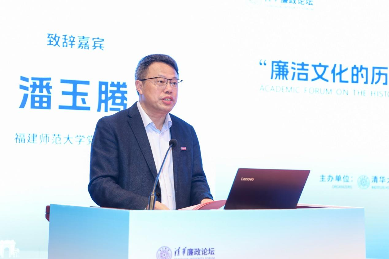潘玉腾在致辞中指出,加强新时代廉洁文化建设是深入推进党的自我革命的重要举措,是一体推进不敢腐、不能腐、不想腐的基础性工程。近年来,学校牢记习近平总书记在福建工作期间寄予学校的厚望重托,在福建省内率先开展纪检监察学科建设,在各位专家指导支持下取得了初步成效。此次联合清华大学举办论坛,聚焦廉洁文化的历史传承与新时代创新,既回望历史,又立足当下,更面向未来,必将为推动新时代廉洁文化高质量发展注入新的动能、增添新的活力。