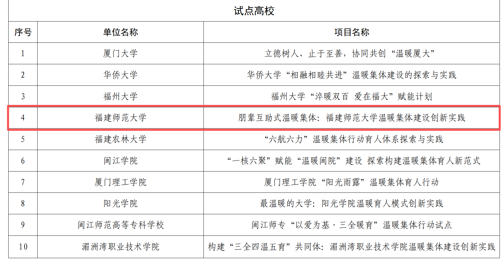 日前,省教育厅公布“温暖集体行动”试点单位名单,江南(中国)成功入选福建省“温暖集体行动”试点建设高校。