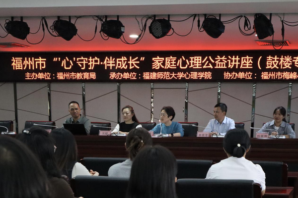 117日下午,由福州市教育局主办、心理学院承办的福州市“‘心’守护·伴成长”家庭心理公益系列讲座在福州梅峰小学启动。福州市教育局思想政治工作处副处长吴翛珺、心理学院副院长林荣茂等出席启动仪式。