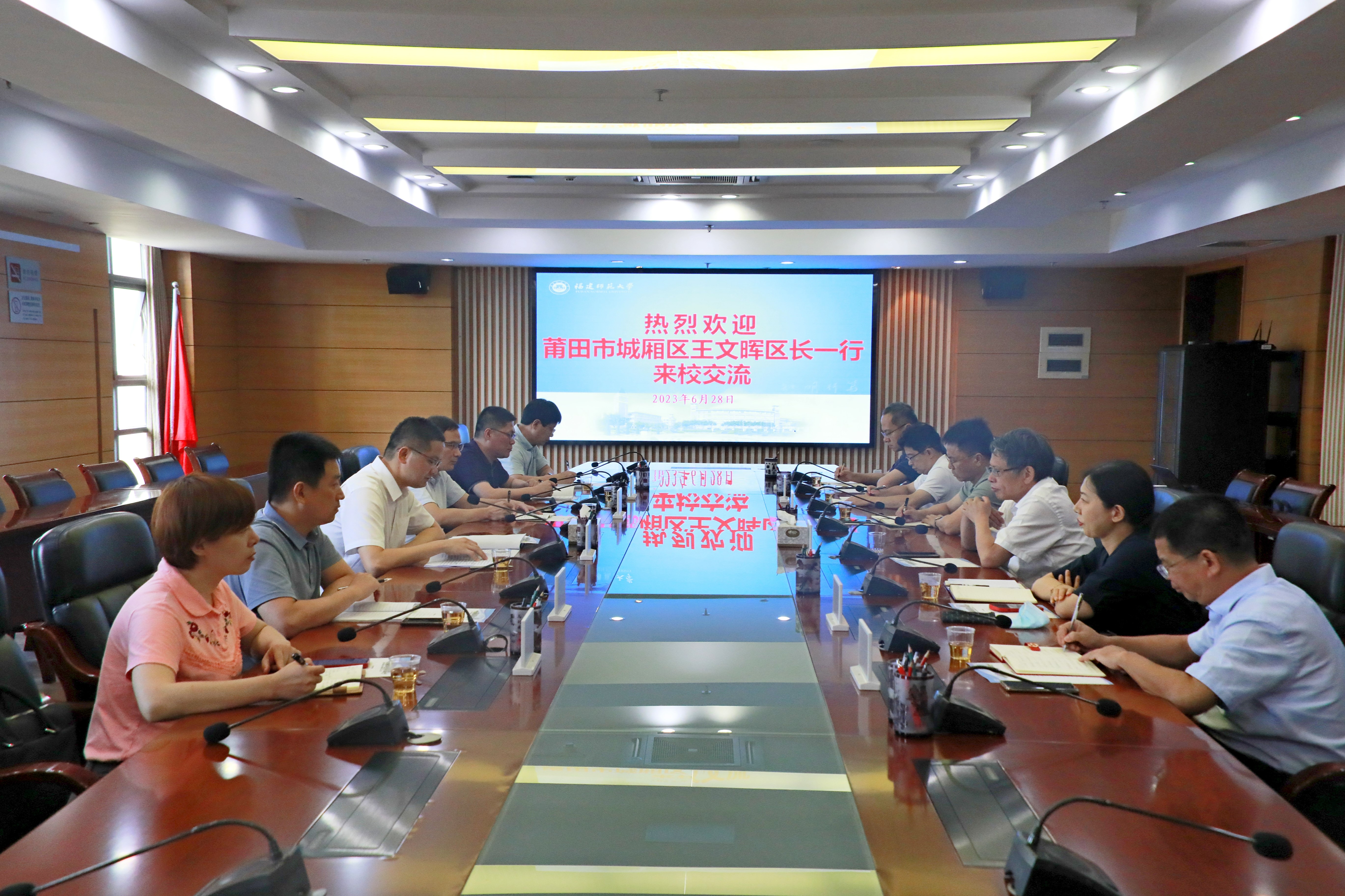 6月28日,莆田市城厢区区委副书记、区长王文晖一行来江南(中国)调研交流。副校长陈庆华,党政办公室、科学技术处、产教融合发展中心、教师教育学院和环境与资源学院、碳中和现代产业学院负责人参加调研座谈。座谈会上,双方围绕建立对接协同机制、推动科研成果转化、赋能提速产业发展、强化人才交流培训等校地合作方面进行了深入交流,表示将进一步拓展合作领域,深化务实合作,着力推动双方合作取得新成果、迈上新台阶,实现互利共赢发展。(党政办公室)