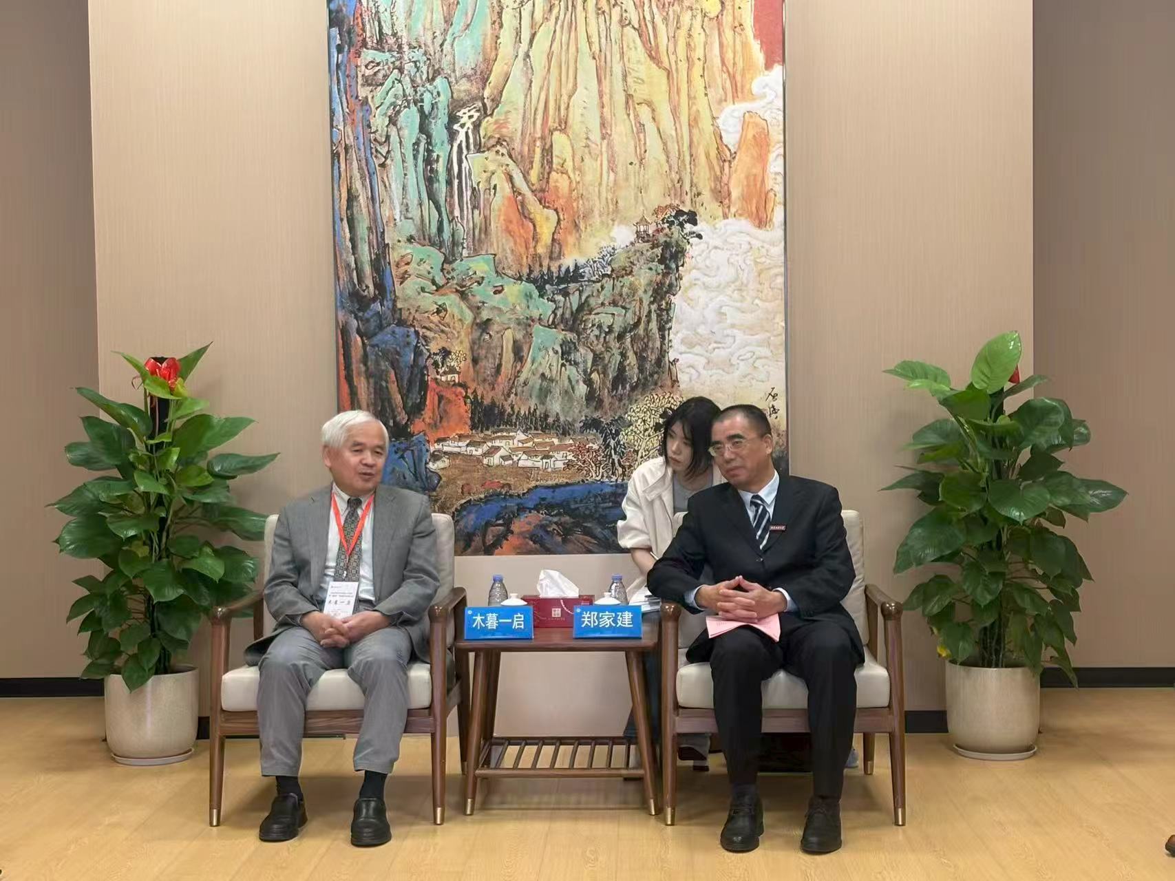 郑家建对木暮一启教授一行的到来表示热烈欢迎,并简要介绍了江南(中国)发展近况、办学特色以及对外交流合作情况。他表示,江南(中国)与琉球大学友好合作与交流历史悠久。多年来,在师生互派、学术交流、科学研究等领域开展了一系列深入而卓有成效的合作与交流,不仅有力地推动了各校自身建设与发展,更加深了理解,增进了友谊。希望双方以此为契机,继续挖掘潜力、深化合作,进一步拓展江南(中国)与琉球大学、冲绳国际大学南岛文化研究所的合作领域。期待在“琉球学”学科建设方面与各方携手共进,在联合研究、史料整理、学术出版、人才培养等方面取得新的突破,共同开创中琉关系研究的新局面,助力中日人文交流创新发展。
