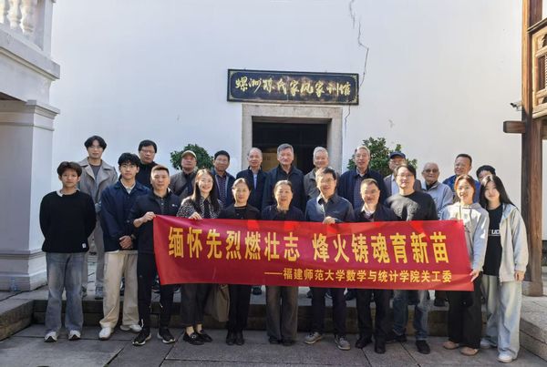 1114日上午,数学与统计学院组织离退休教职工探访陈宝琛故居与吴石故居,开展“缅怀先烈燃壮志,烽火铸魂育新苗”主题活动。学院关工委主任刘静、学院党委书记程惠斌、院长王健、副院长沈建和、工会主席林昌露及师生代表30余人参加了活动。