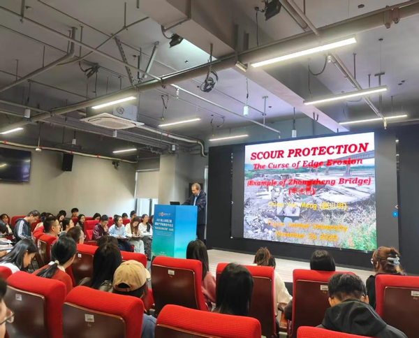 1126日上午,Prof. Chiew Yee Meng教授以“Scour Protection The Curse of Edge Erosion”为题,结合其40余年研究经验,探讨了泥沙输移、侵蚀防护等水力学前沿问题。当日下午,中国稀土学会副秘书长张安文教授级高工作题为“稀土——二十一世纪新材料的宝库”的学术报告,从稀土冶金、材料应用及产业发展等多角度展开讲解。