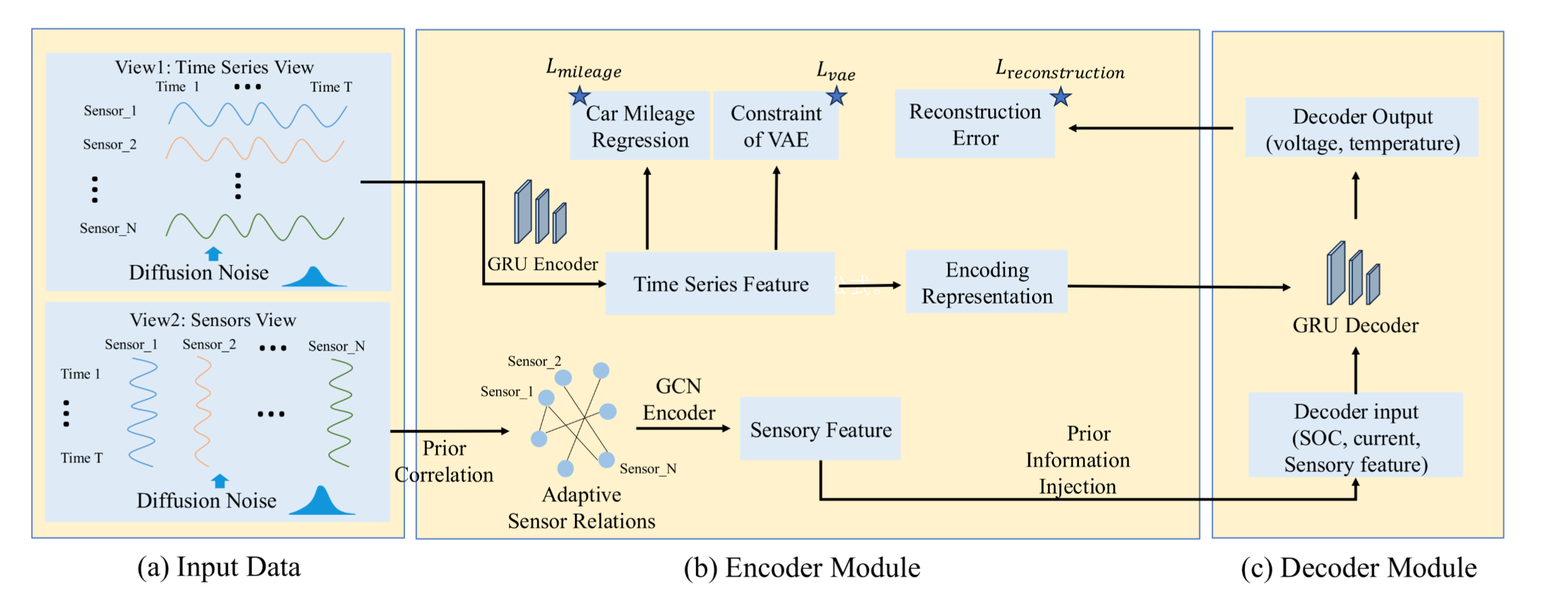 研究成果一:针对储能系统在电动汽车、光伏、风电等场景中的异常检测困难问题,提出了面向多传感器电池系统的双视图潜变量异常检测方法 DVSAD,以应对高维传感器数据下的安全监测需求。该方法将传感器关系图与时间序列特征融合建模,并结合扩散噪声平滑与物理先验驱动的结构引导评分,以增强对跨传感器耦合与噪声扰动的识别能力。实验结果显示,该方法在 F1 和 AUC 等指标上均取得明显提升,对电-热耦合异常等隐性故障具有更高敏感度。该成果以“Unsupervised Anomaly Detection in Energy Storage Systems using Dual-View Latent Variable Modeling”为题,发表在国际知名期刊《Engineering Applications of Artificial Intelligence》上,该期刊属于中科院一区TOP期刊。