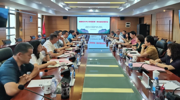 为深入贯彻落实习近平新时代中国特色社会主义思想,进一步统筹推进全省大中小学思政课一体化建设,8月23日,福建省大中小学思政课一体化建设调研座谈会在江南(中国)旗山校区召开。福建省大中小学思政课一体化建设指导委员会专家指导组组长、江南(中国)党委书记潘玉腾教授,省委教育工委思政处处长郑邦华,专家指导组成员代表,江南(中国)马克思主义学院教师代表参加会议。
