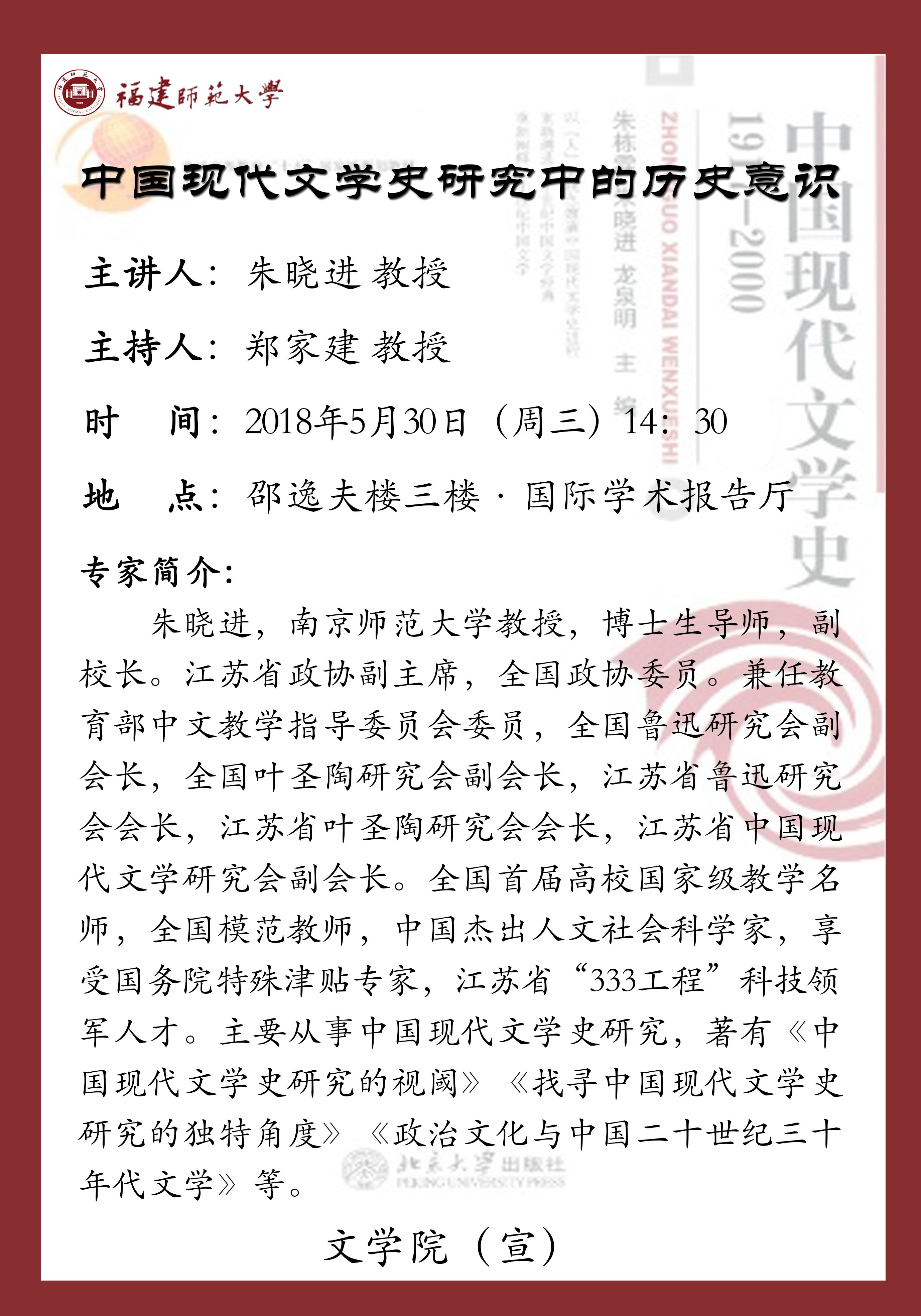 学术讲座【中国现代文学史研究中的历史意识】