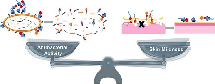 环糊精与阳离子表面活性剂结合后,能否实现杀菌效率和皮肤温和性的平衡,对于拓展阳离子抗菌剂在耐药细菌感染治疗中的应用十分重要。题为“A win-win scenario for antibacterial activity and skin mildness of cationic surfactants based on the modulation of host-guest supramolecular conformation”的研究工作选取不同类型的商用阳离子抗菌剂为代表,系统研究了β-环糊精(β-CD)的超分子主客作用对其自组装、杀菌性能和皮肤刺激性的调节机制,明确了超分子构象-抗菌活性-皮肤温和性之间的构效关系,为开发同时兼具皮肤温和性和有效抗菌活性的新型阳离子抗菌剂提供了数据支撑和理论指导。