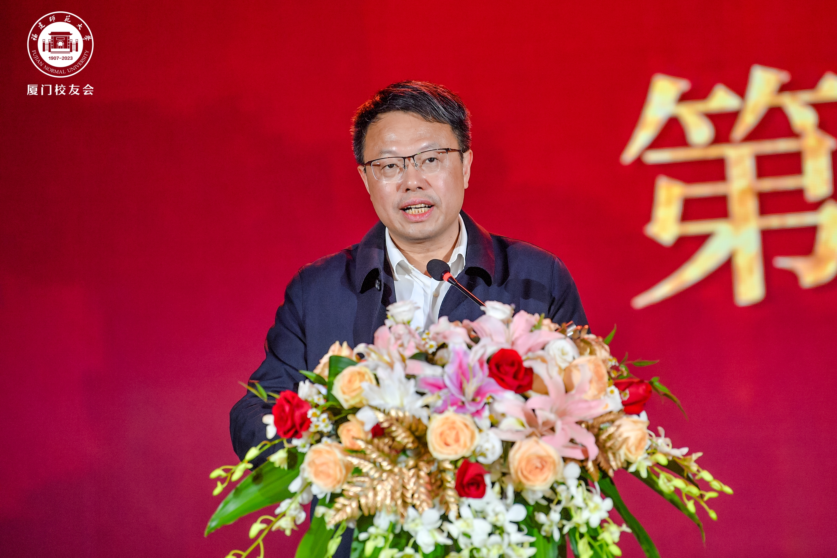 潘玉腾代表学校向新当选的厦门校友会理监事会表示祝贺,向长期关心支持母校事业发展的在厦校友致以谢意。他指出,学校正深入实施新一轮“双一流”建设,尤其需要团结凝聚广大校友,汇聚形成推动学校事业内涵式、高质量发展的强大动能。他希望厦门校友会深入践行“一朝福师人,一生福师情”的根情文化观,持续增强校友工作的凝聚力、向心力,推动构建校友和母校“发展共同体”,一如既往关心支持母校建设发展,为母校再谱事业发展新华章融入更多的校友智慧、校友基因和校友力量。