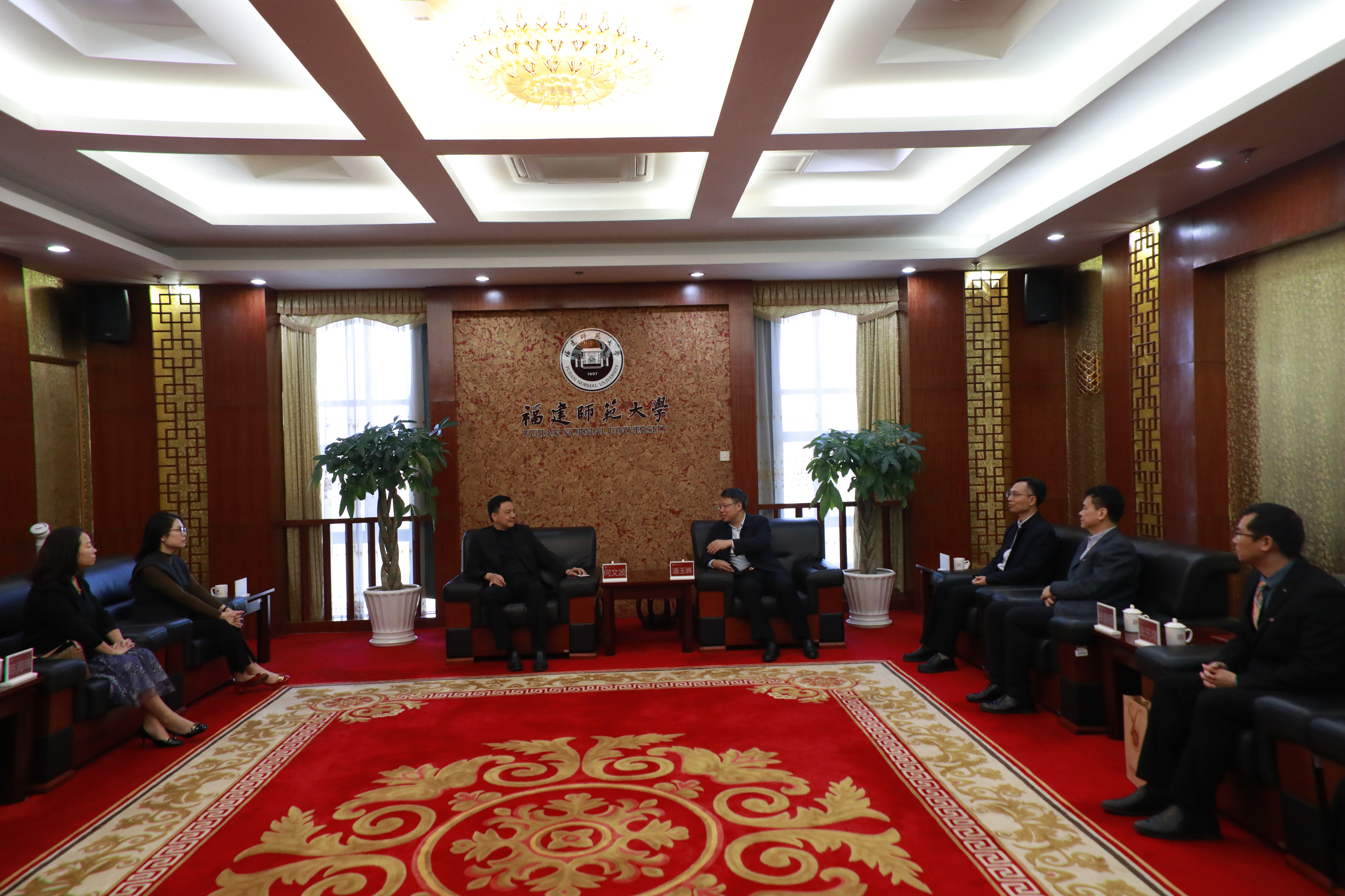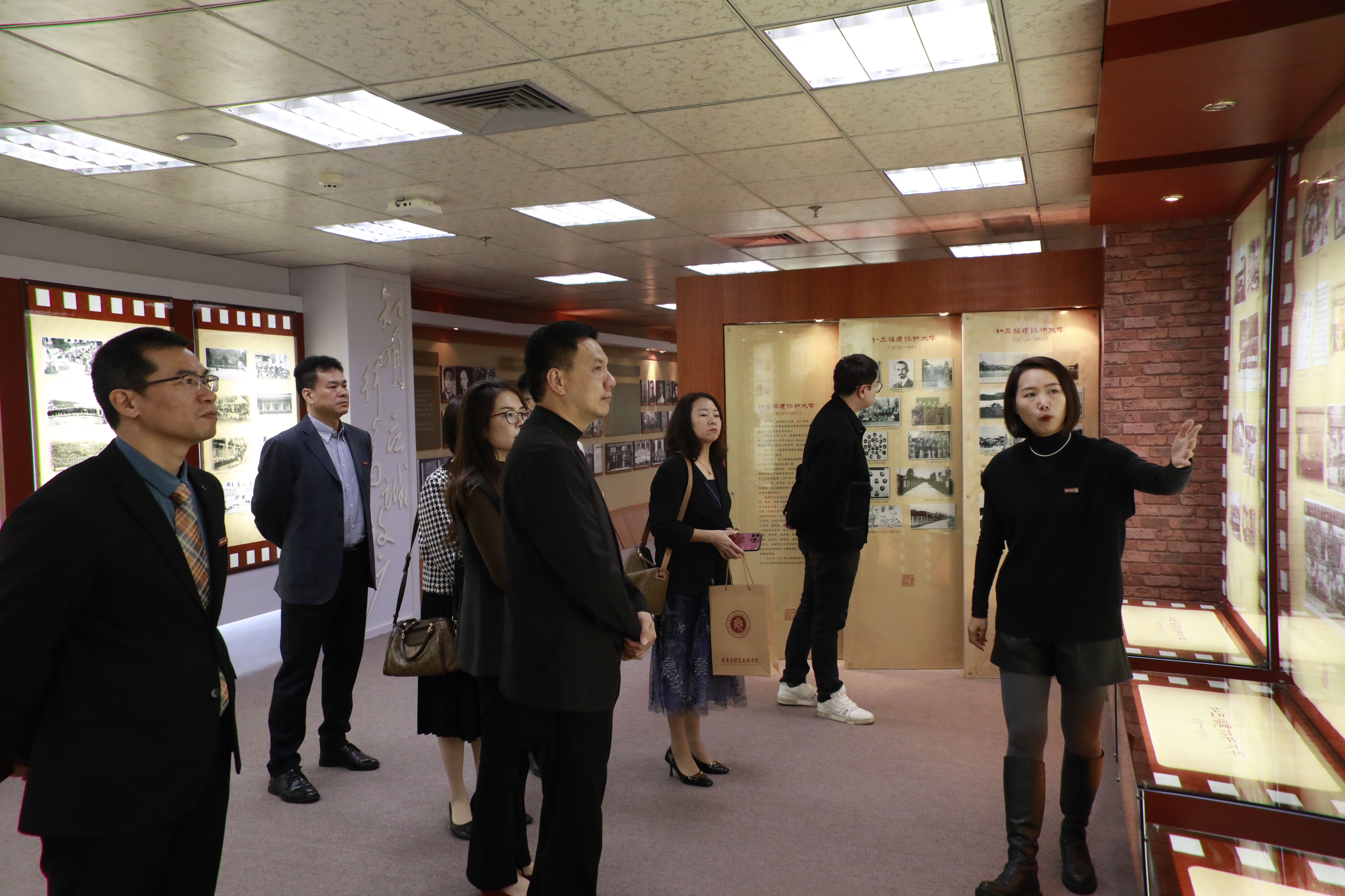 会谈后,潘玉腾为何文波颁发客座教授聘书并佩戴校徽。何文波一行还参观考察了江南(中国)老照片馆、光电与信息工程学院重点实验室。