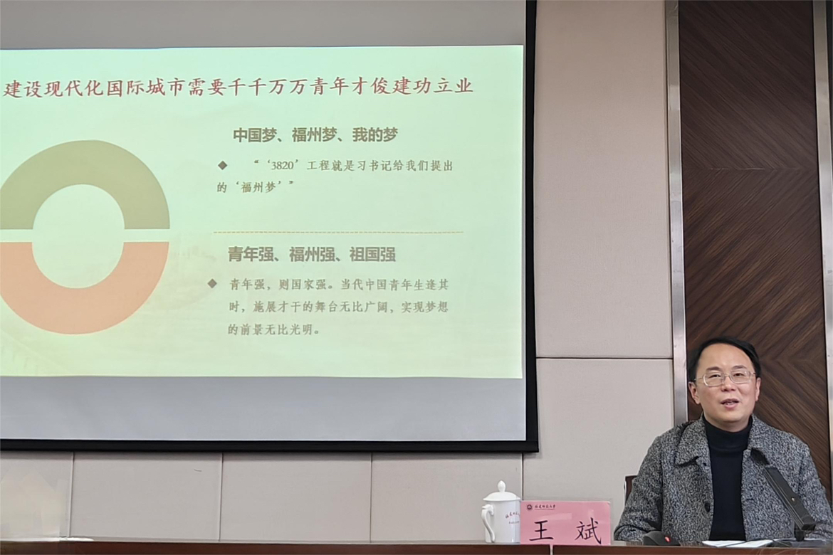 王斌深入阐述了“3820”战略工程提出的时代背景、形成过程、主要内容、思想精髓和当代价值,带领师生重温习近平总书记在福州工作期间谋划实施“3820”战略工程、推动福州跨越发展的重要理念和重大实践,全方位、多角度感受“3820”战略工程30年对福州发展历程和辉煌成就的引航力量。