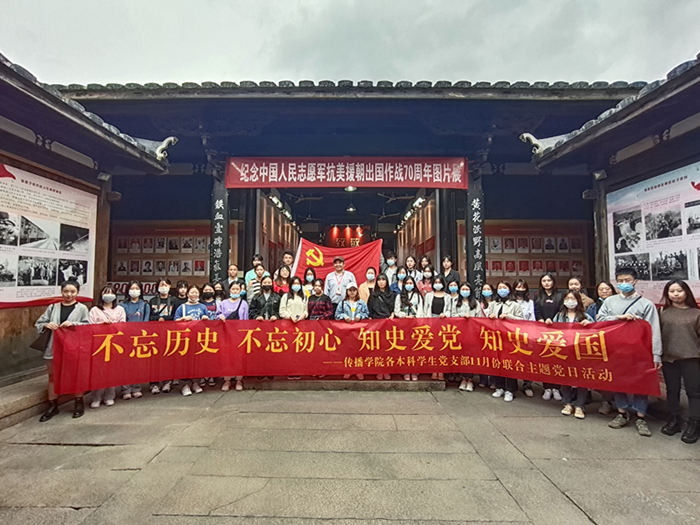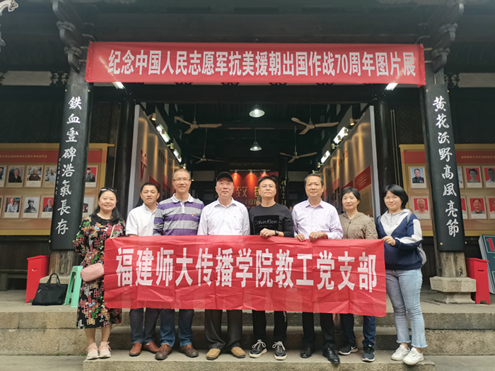 11月6日-7日,传播学院党务行政教工党支部、本科学生党支部先后走进新四军驻福州办事处旧址,开展“不忘历史 不忘初心 知史爱党 知史爱国”暨11月份联合主题党日活动,7个党支部共计47名师生党员先后参观了“致敬最可爱的人——纪念中国人民志愿军抗美援朝出国作战70周年展览”。