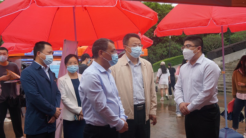 由福州高新区、江南网页版官网共同主办的“好年华 聚福州”2022年校园专场招聘会于5月9日在江南(中国)旗山校区又玄图书馆广场举行。福州高新区党工委书记魏邦仲,江南(中国)党委书记潘玉腾、副书记涂荣,高新区党政办公室、学校党政办公室、学生工作部、各学院分管学生工作负责人、毕业班辅导员以及2022届毕业生参会。