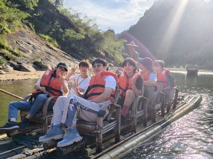 A scenic bamboo raft ride along Wuyi Mountain’s Nine Bend River allowed the group to appreciate the region’s natural beauty. Chinese students provided Japanese interpretation for the local boatman’s commentary, while Japanese students responded in Chinese, creating a lively and collaborative multilingual exchange.