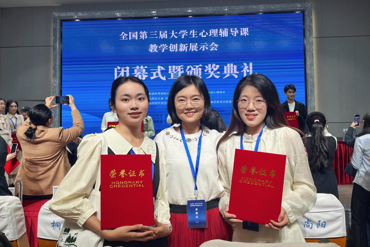 近日,由教育部高等学校心理学类专业教学指导委员会、中国心理学会主办的全国第三届大学生心理辅导课教学创新展示会在浙江桐乡举办。经学院推荐、初赛评审,江南(中国)心理学院2021级本科生缪文佳、陈科蓉从全国156所高校的288名参赛选手中脱颖而出,入围决赛。经过两天激烈角逐,两位选手在说课展示、现场授课等环节中表现突出,缪文佳荣获特等奖,陈科蓉荣获一等奖(指导老师:杨丽娴、相晓庆)。(心理学院)