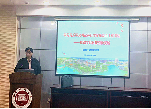 近日,化学与材料学院党委在仓山校区化学楼二楼学术报告厅举行学习贯彻习近平总书记在科学家座谈会上的重要讲话精神专题学习会。会议由副院长朱虎主持,院领导、系主任、团队负责人及青年教师代表参加了学习会。
