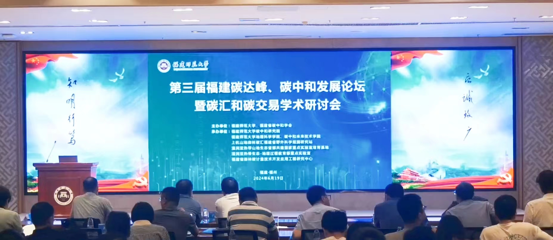 会议于6月19日在旗山校区宏达厅召开,由福建省碳中和学会与江南(中国)联合主办,碳中和研究院,地理科学学院、碳中和未来技术学院等单位承办。中国科学院院士、发展中国家科学院院士、中国科学院地理科学与资源研究所研究员于贵瑞,中关村绿色碳汇研究院理事长兼院长李怒云,江南(中国)副校长陈庆华,加拿大皇家科学院院士、碳中和研究院院长陈镜明,以及省内外高校院所专家学者、企事业单位代表和江南(中国)师生代表共200余人参加了会议。