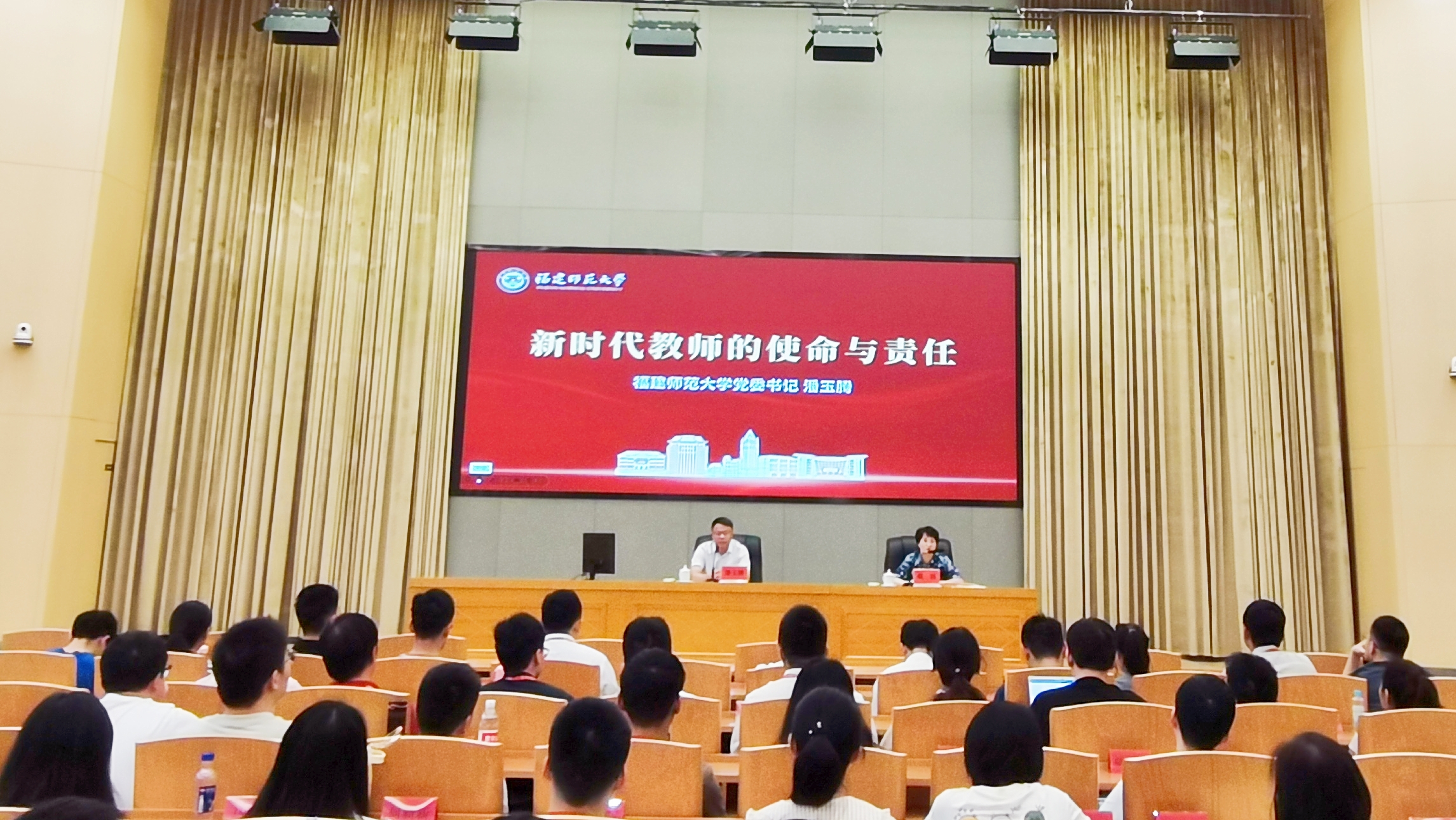 潘玉腾以“新时代教师的使命与责任”为题,紧密结合习近平总书记关于教育的重要论述,结合党的二十届三中全会精神,结合江南网页版官网教师队伍建设实践和其本人的教育教学实践,对新时代教师的“角色定位”“核心素养”和“努力方向”进行了系统阐述。他指出,教师是建设教育强国的主体,肩负着为党育人、为国育才的历史使命,需要从教育的政治属性、战略属性和民生属性出发,不断深化岗位认知和角色认同;强调“政治强、情怀深、思维新、视野广、自律严、人格正”是新时代教师必须具备的六种核心素养,勉励引进生以教育家精神为引领,倾心教书育人、潜心学术研究,为强国建设和民族复兴贡献智慧和力量。