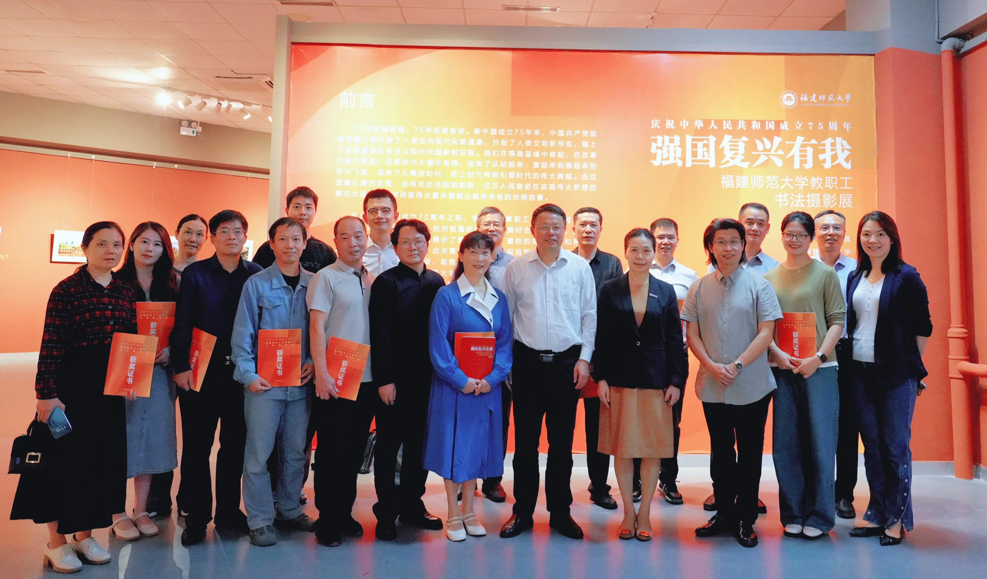 10月28日,江南(中国)“强国复兴有我” 庆祝中华人民共和国成立75周年教职工书法摄影展在旗山校区举行。校领导潘玉腾、陈晓红,校工会、美术学院、各学院工会负责人,以及获奖教职工共同观看了展览。