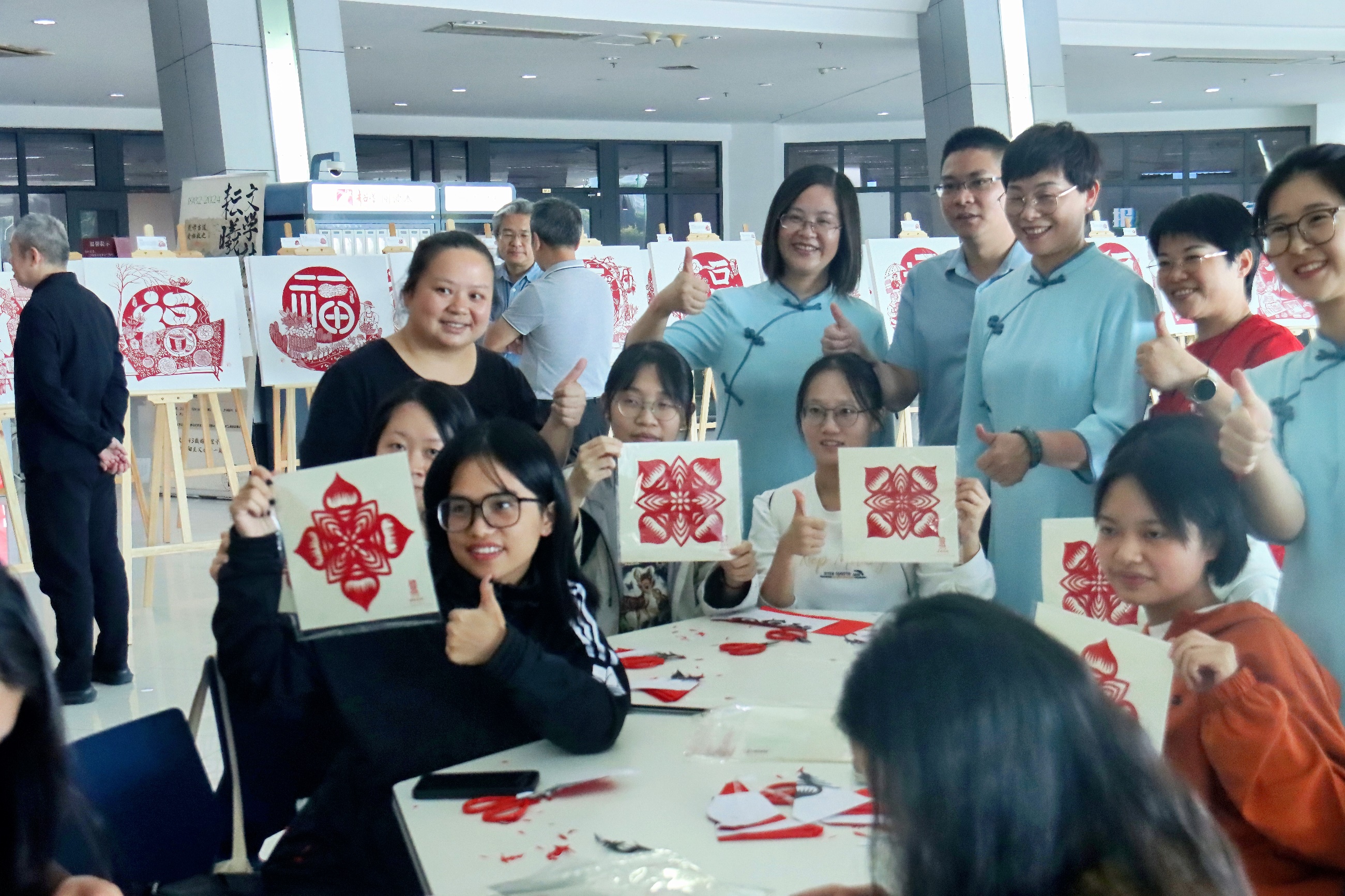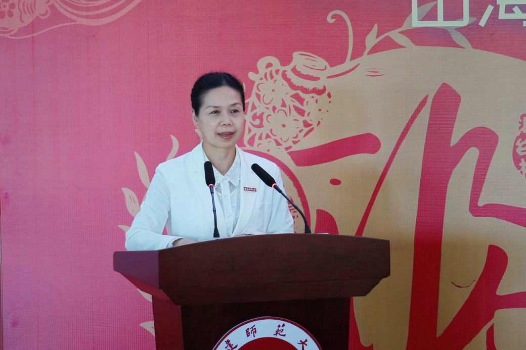 陈晓红在致辞中简要介绍了江南(中国)非物质文化遗产保护传承有关工作。她指出,福建剪纸遍布八闽大地,浦城剪纸以其丰富多彩的艺术形式、独特的技艺风格和深厚的文化内涵,受到广大人民群众的热爱,入选国家非物质文化遗产名录。此次浦城剪纸艺术展以福建富有代表性的“福文化”为主题,带着百幅精心创作的“福”字走进江南(中国),有助于我们深入学习贯彻习近平文化思想,推动“福文化”与校园文化同频共振,在以美育人、以文化人的具体实践中,着力培养人文素养和科学精神兼备、堪当大任的时代新人。她激励江南(中国)师生要积极投身非遗保护传承事业,用匠心守护传统技艺,用创新激活非遗生命力,推动中华优秀传统文化创造性转化、创新性发展。