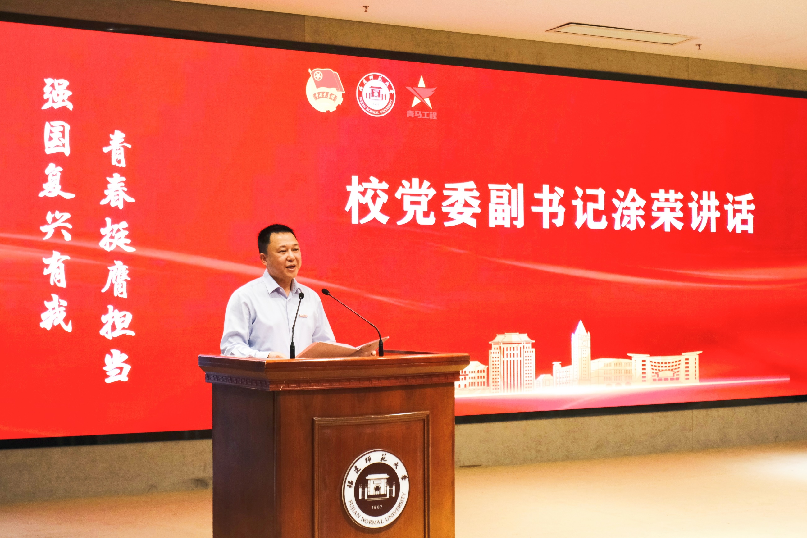 开班式上,涂荣为校第24期“青马工程”培训班授旗,并为“青马育青苗”实践基地授牌。他指出,“青马工程”是共青团为党培养青年先锋分子的战略性、引领性、标志性工程,希望青马学员强化理论武装,聚焦学深悟透习近平新时代中国特色社会主义思想,在深化内化转化上持续用力;胸怀国之大者,以真才实学服务人民,以创新创造贡献国家;当好先锋表率,牢固树立标杆意识和服务意识,在实践中“点亮一盏灯、照亮一大片”。