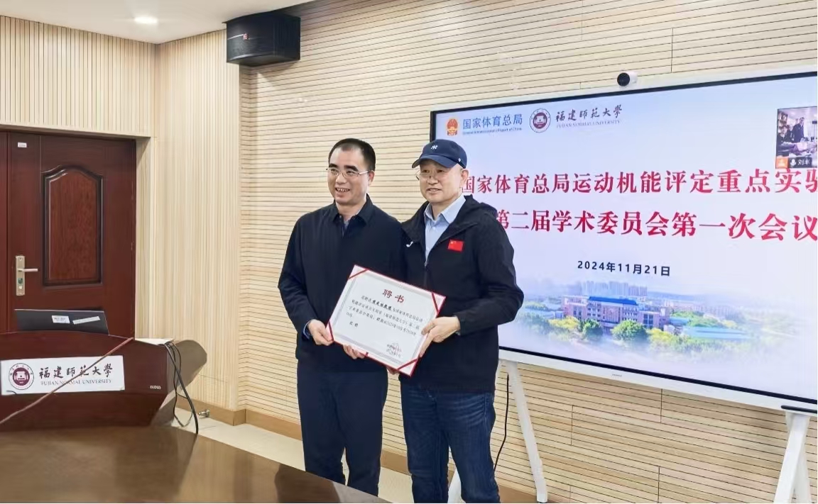 会议于11月21日在旗山校区以线上线下相结合的方式召开。新一届学术委员会主任、上海体育大学原校长陈佩杰教授,新一届学术委员会副主任、国家体育总局运动医学研究所原所长谢敏豪教授,副校长郑家建,以及来自国内知名高校的专家学者、江南(中国)科学技术处、体育科学学院负责人及实验室骨干成员参加会议。科技处负责人代表学校宣读了第二届学术委员会组成人员名单,郑家建向委员们颁发聘书。