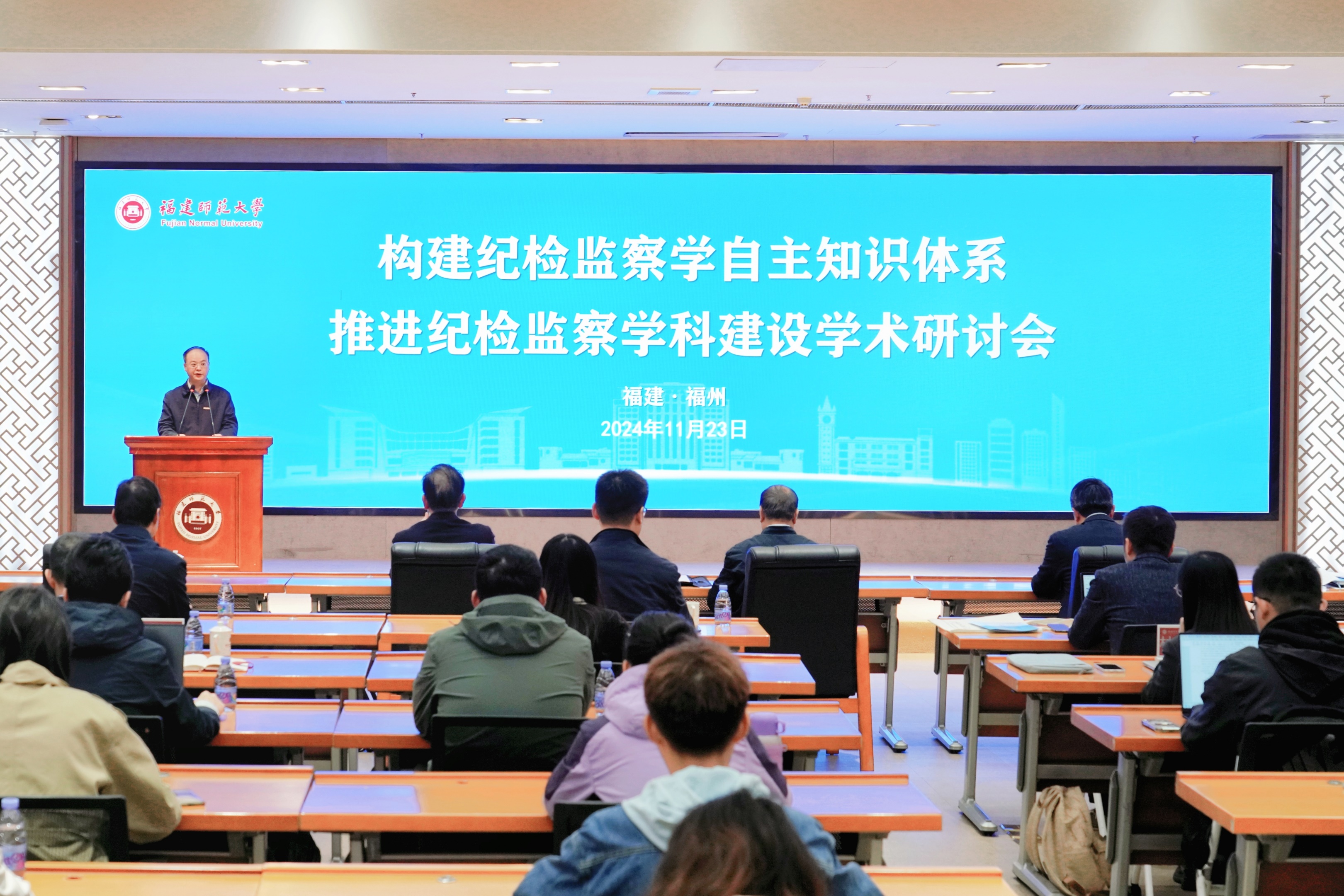 研讨会于11月23日在旗山校区举行。中国纪检监察学院客座教授、中国廉政研究中心副理事长李雪勤,国务院学位委员会纪检监察学学科评议组召集人、华东政法大学党委书记、纪检监察学院院长郭为禄教授,中国社会科学院学部委员、中国社会科学院法学研究所/国际法研究所联合党委书记、中国社会科学院法学研究所所长、中国社会科学院大学法学院院长莫纪宏研究员,国务院学位委员会纪检监察学学科评议组成员兼秘书长、清华大学党委副书记、国际反腐败学院理事会理事过勇教授,南方科技大学党委副书记、纪委书记、廉洁研究院院长姚文胜教授出席研讨会,来自清华大学、中国人民大学、中国政法大学、华东政法大学、北京科技大学、湘潭大学、福建省委党校(福建行政学院)专家,以及江南(中国)纪检监察学科师生代表等100多人参加研讨会。江南(中国)党委书记潘玉腾教授出席开幕式并致辞,福建省纪检监察协会副会长、校纪委书记林月恩研究员主持研讨会。