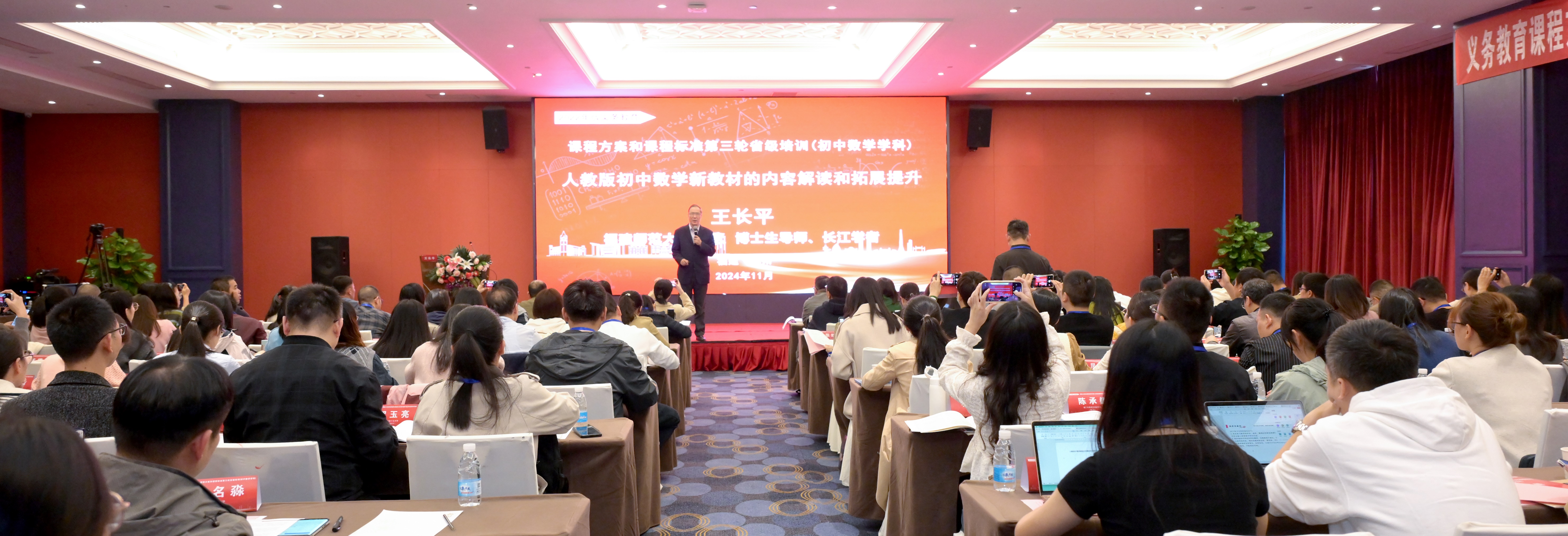 培训班于11月24日至26日在福州以线上线下的方式举行,由省教育厅主办、省普通教育教学研究室协办、江南(中国)承办。校长王长平、福建省普通教育教学研究室张弘,教务处、数学与统计学院相关负责人参加开班式,全省各地市的120余名初中数学教研员及一线骨干教师参与了线下培训,约2万人观看了线上直播。