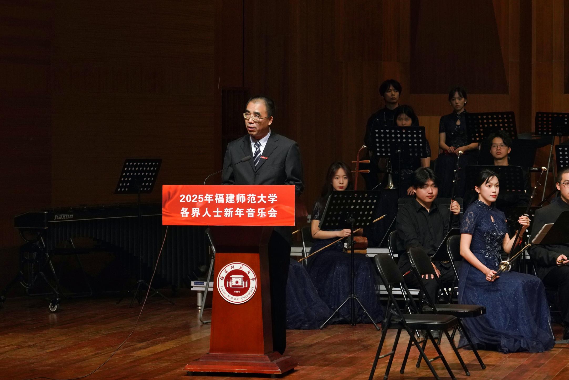 校长郑家建在致辞中代表学校向在场各界人士,并通过他们向全校师生员工、离退休老同志以及所有关心、支持学校改革发展的各级领导、各界友人和海内外校友,表示衷心的感谢,并致以新年的美好祝愿。他指出,2025年是“十四五”规划收官之年和谋划“十五五”规划之年,也是学校统一思想行动,奋力开创“双一流”建设新局面的重要一年,全校上下要以习近平新时代中国特色社会主义思想为指导,描绘新蓝图、踏上新征程,深化改革增活力、强化内涵提质量,奋力开创师大更加美好灿烂的未来。