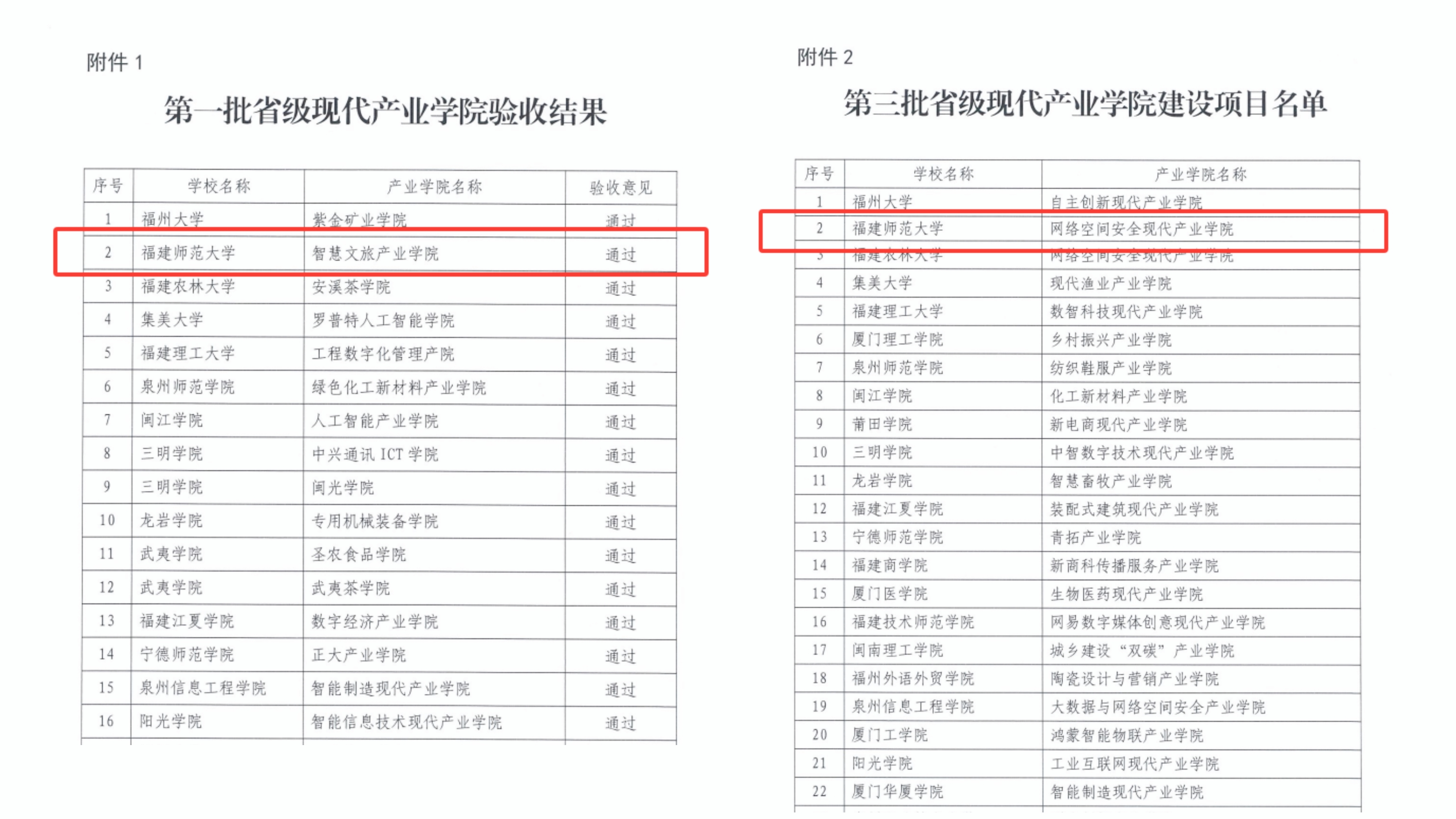 近日,福建省教育厅、福建省工业和信息化厅联合公布省级现代产业学院第一批验收结果和第三批立项建设项目名单。江南(中国)智慧文旅产业学院顺利通过第一批省级现代产业学院验收,网络空间安全现代产业学院成功入选第三批省级现代产业学院立项建设项目。截至目前,江南(中国)已获批2个省级现代产业学院。