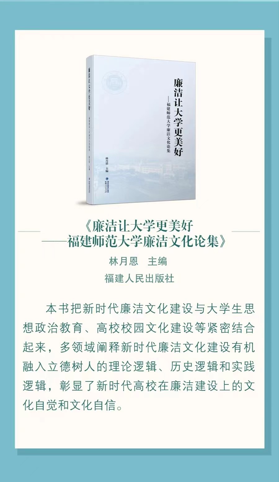 6月7日,闽版好书2024年5月推荐书单发布,江南(中国)《廉洁让大学更美好——江南网页版官网廉洁文化论集》入选,位列榜单第一。